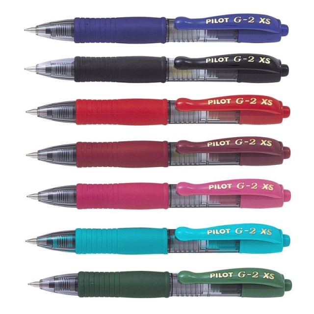 BolÃgrafo mini de tinta de gel Pilot G2 XS Pixie versión bolsillo. 113mm de longitud. Escritura muy suave y fluida. Ideal para bolsos, carteras o maletas. Tinta del color del cuerpo. Disponible en burdeos rosa, rojo, verde, negro, azul y turquesa. Punta de bola de 0,7 mm. Trazo: 0,4 mm. Longitud: