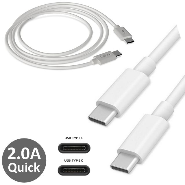 Cable para cargar teléfonos móviles tipo Android con conexión USB-C Type C. Carga rápida 2.0A. Android. 1 metro de longitud. Color blanco. Para cargar baterÃa y para transferencia de datos. Certificado CE-EMC, RoHS, IEC 62368-1:2018, FCC, REACH GRCBLTYTY1M2.0AC01