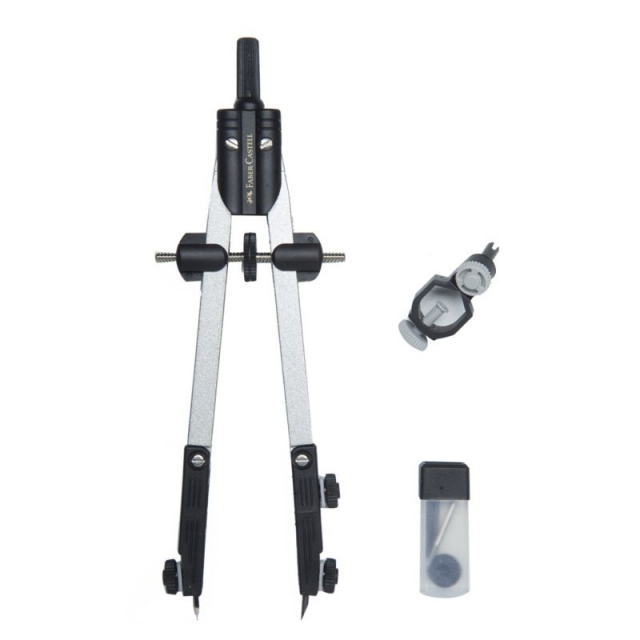 Compas artÃculado Faber-Castell para uso escolar o técnico. Ajuste rápido o fino mediante la tuerca del soporte central. Adaptador universal para rotulador, lápiz o portaminas, incluido. Traza circunferencias de hasta 340 mm Brazos articulados. Materiales de alta calidad.