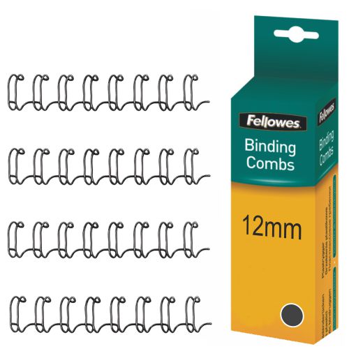 Espirales Dobles Wires metálicas para encuadernar, 12 mm. Paso 3:1 Admiten hasta 100 hojas A4 70 grs. Caja de 100 gusanillos de metal, lacados en color negro. Para encuadernadoras con sistema Wire.