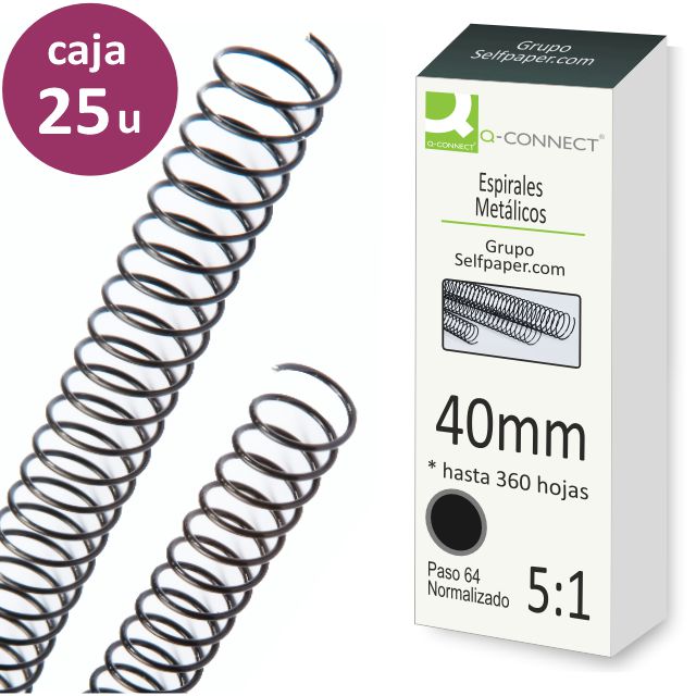 Espirales encuadernar 40 mm, paso 5:1, 64, Caja 25