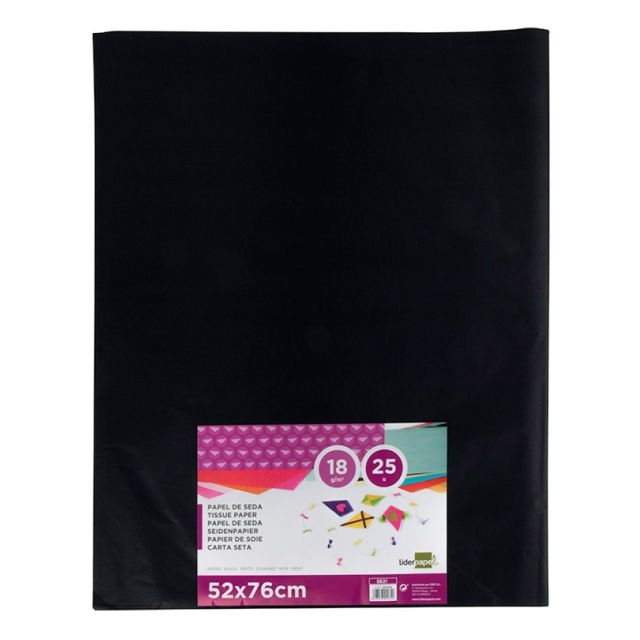 comprar Mano 25 hojas papel de seda Negro Liderpapel SE21, 52x76, online.