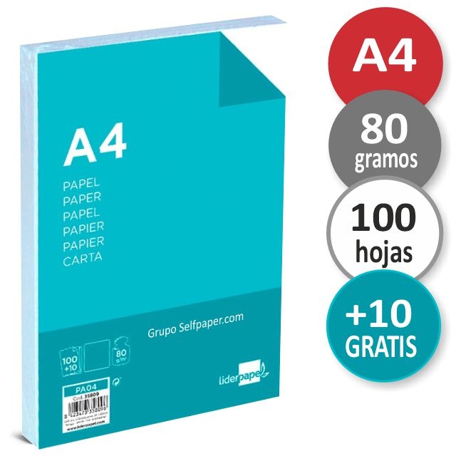 Paquete de 100+10 hojas Gratis, de folios de papel Din A4, 80 gramos de grosor, calidad Extra. Muy Liso, con Alta blancura y opacidad.