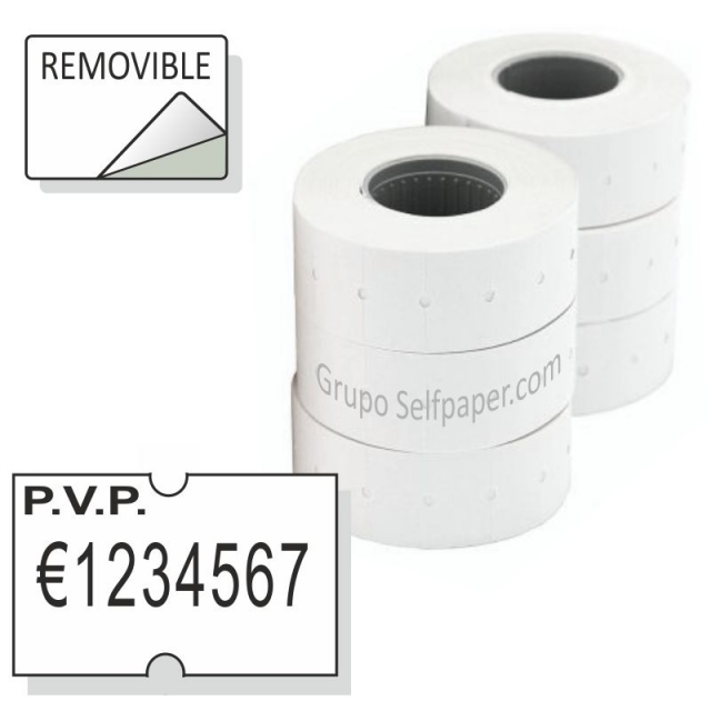 Rollo etiquetas precios PVP 21x12 mm removible Pack 6
