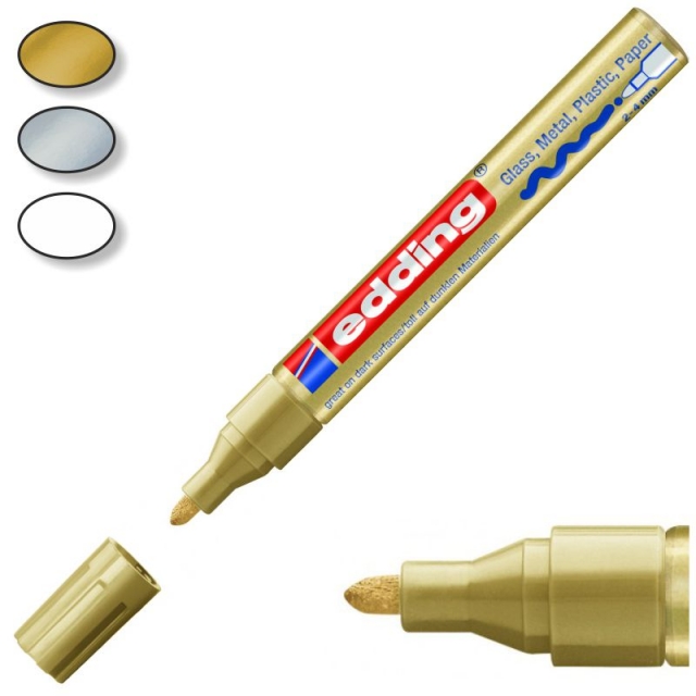 comprar Marcador Edding 750 metalizado tinta opaca oro plata blanco, online.