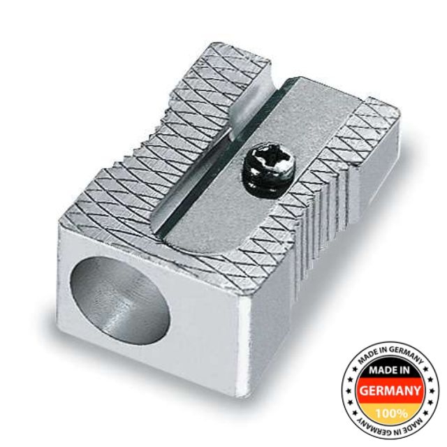 Sacapuntas, afilalápices metálico con afilada cuchilla de acero inoxidable. Robusto, ligero y duradero. La más alta calidad para un afilado perfecto de lápices tamaño standard de hasta 8,2 mm de diámetro. Inclinación del corte: 23º Forma de cuña.